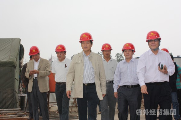 集團(tuán)公司董事長肖玉龍(左三)在工程施工現(xiàn)場檢查安全