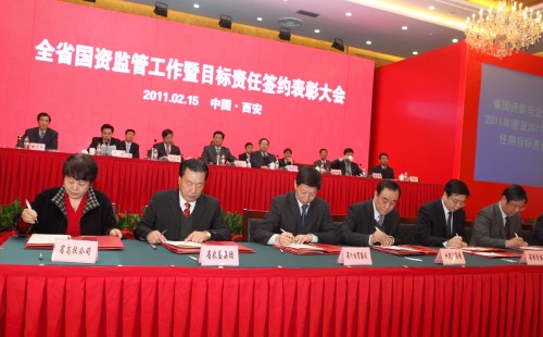 2月15日下午,2011年全省國資監(jiān)管工作暨目標(biāo)責(zé)任簽約會議在陜西省賓館舉行。省長趙正永,省委常委、省委組織部部長李錦斌,省人大常委會副主任白阿瑩,副省長吳登昌等相關(guān)領(lǐng)導(dǎo)參會。“十一五”期間我省國資委監(jiān)管企業(yè)資產(chǎn)總額由1477億元增加到6969億元,增長371%,所有者權(quán)益由339.9億元增加到2434億元,增長616%,主要經(jīng)濟(jì)指標(biāo)步入全國先進(jìn)行列,位居西部前列。趙正永在講話中首先代表省委、省政府對“十一五”全省國資監(jiān)管和國有企業(yè)發(fā)展取得的成績給予充分肯定。他要求全省國資監(jiān)管系統(tǒng)和國有企業(yè)進(jìn)一步做強(qiáng)、做優(yōu)、做大國有資本。要不斷探索新國有企業(yè)參與民主建設(shè)的途徑和方式在承擔(dān)社會責(zé)任方面做出表率,努力實(shí)現(xiàn)企業(yè)與社會的共贏。