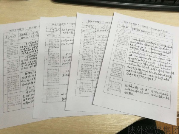 陜外經貿集團紀委于近日開展2017年領導干部“一崗雙責”履職填報工作,集團中層副職以上領導結合自身工作實際,對照年初制定的目標責任分解認真進行填報,共收到35份填報表。