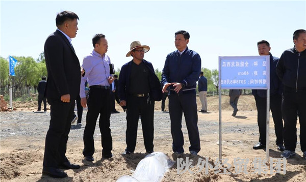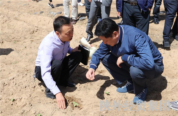 2018年5月22日,集團董事長肖玉龍蒞臨外經貿土地整理開發工程有限公司榆林分公司進行指導工作,在土地公司總經理唐李、榆林分公司經理羅志中的陪同下到鹽堿地試驗田進行視察。隨行的還有集團宣傳部長張斌,榆陽區國土局局長王開富、土地整理中心主任王波,明杰農業董事長羅小虎等。