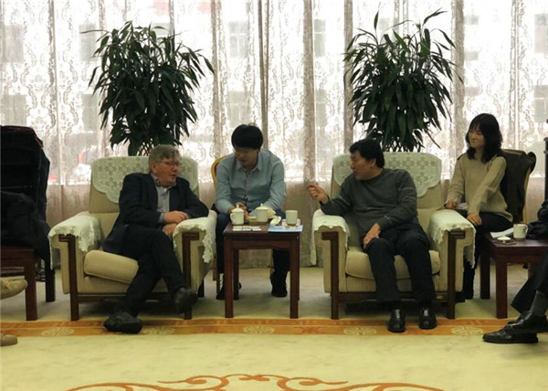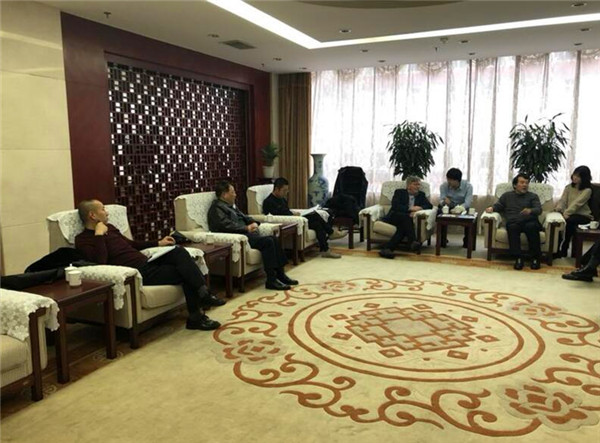 2018年11月16日上午,陜西省外經貿實業集團有限公司副總經理劉晏、陜外經貿土地公司董事長丁永忠、總經理唐李等人,在陜西省止園飯店會議室接待了來自荷蘭HZPC公司中國區運營總經理 唐福來先生,HZPC中國區高級顧問 劉曉策 及 西安阿瓦隆農業科技有限公司總經理 黃禹喬等人,雙方就馬鈴薯種植項目的合作事宜進行了深入的洽談。