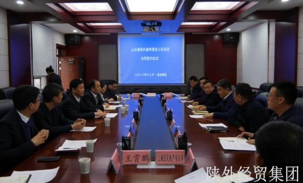 2018年12月20日,由陜西省外經貿實業集團有限公司中標的山水閣現代康養居住小區項目合同簽約儀式在延安新城舉行。集團公司黨委書記、董事長肖玉龍一行出席簽約儀式。簽約儀式后,與延安市新區管理委員會黨工委委員、新區投資開發建設有限公司董事長徐志榮舉行座談。