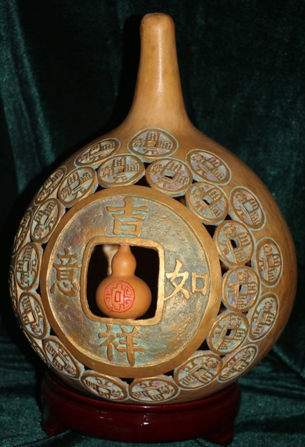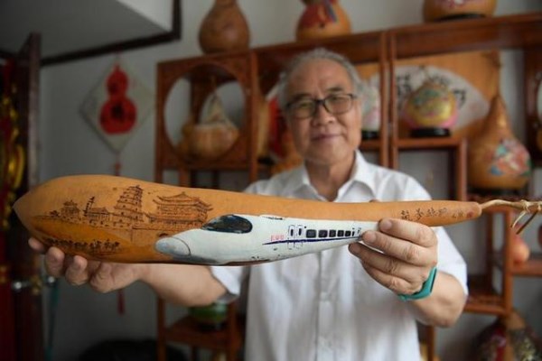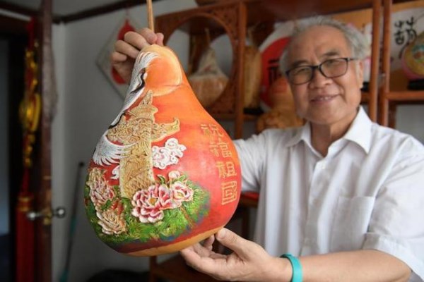 在喜迎新中國成立70周年日子里,梁平安把對祖國的祝福在葫蘆上表現出來,祝祖國繁榮富強,人民幸福安康。